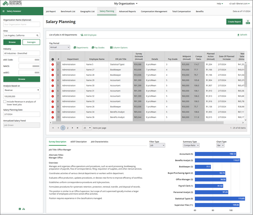 Click on a specific area of the table below or click here for background information about Salary Planning.