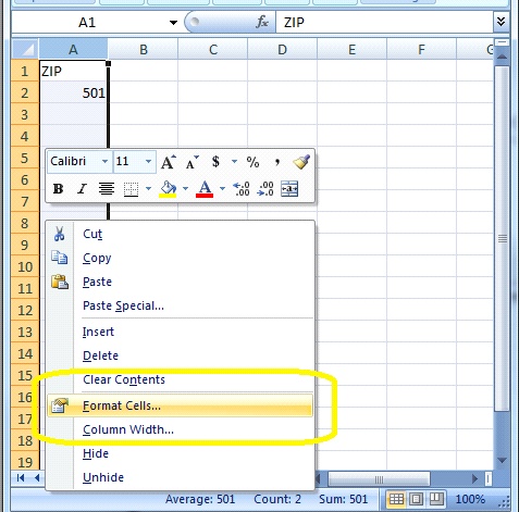 When Excel exports numbers, by default, it drops any leading zeros. Unfortunately, when working with ZIP codes, the leading zero is important, as the ZIP codes need to be five digits long. Fortunately, there is a quick way to change the behavior of the leading zeros when working with ZIP codes.